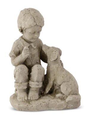 Resin Boy w Dog Statue – 12 inch